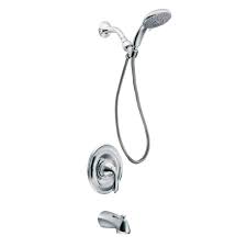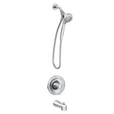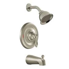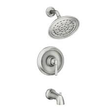 Moen tub shower faucet. Ashville 1 spray single handle shower faucet with valve in spot resist brushed nickel with curved shower rod. Get free shipping on qualified moen shower faucets or buy online pick up in store today in the bath department. Moen bathroom fixtures shower faucet and tub faucet collections are available in a variety of on trend finishes styles and configurations.