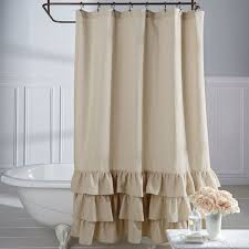 Lush décor darla shower curtain is the ideal piece for your farmhouse style shabby chic or vintage bathroom decor. Made of 100 cotton voile. Pretty elegant shower curtain with ruffled flower details covering the entire shower curtain.